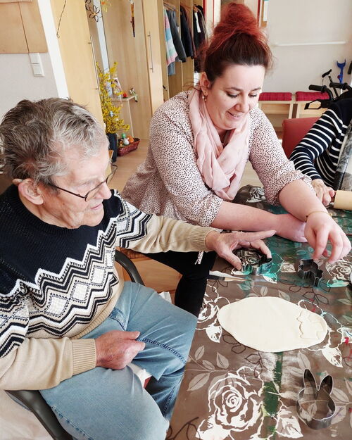 Wir kochen zusammen mit den Tagespflegegästen in der Therapieküche.